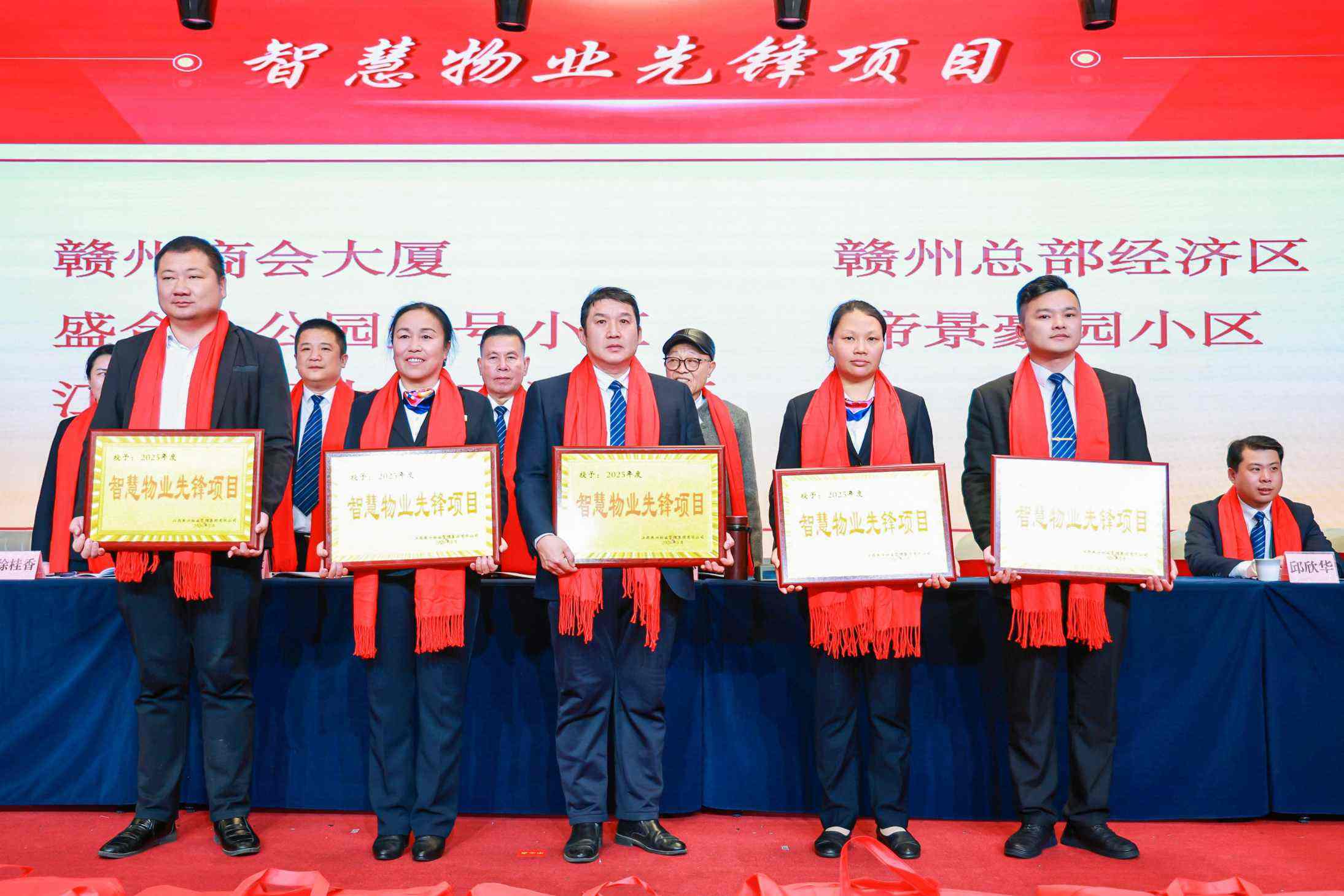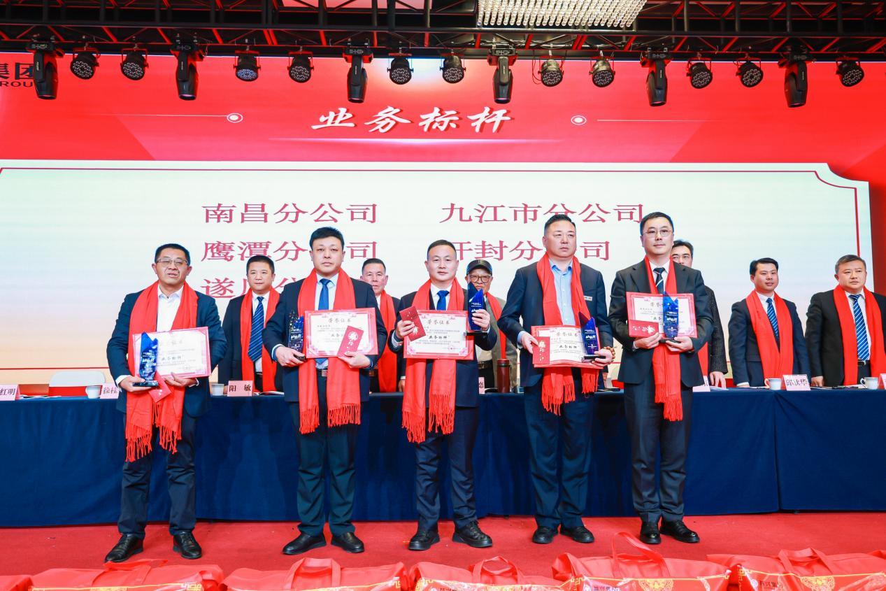 表彰環(huán)節(jié)高潮迭起,集團(tuán)常務(wù)副總經(jīng)理徐桂香宣讀《關(guān)于表彰2025年度先進(jìn)集體和優(yōu)秀個(gè)人的決定》?,F(xiàn)場(chǎng)先后頒發(fā)業(yè)務(wù)標(biāo)桿獎(jiǎng)、優(yōu)秀分公司獎(jiǎng)、優(yōu)秀示范項(xiàng)目獎(jiǎng)、紅色物業(yè)小區(qū)獎(jiǎng)、智慧物業(yè)先鋒項(xiàng)目獎(jiǎng)等集體獎(jiǎng)項(xiàng),以及勞動(dòng)模范獎(jiǎng)、市場(chǎng)業(yè)績(jī)突出獎(jiǎng)、優(yōu)秀管理干部獎(jiǎng)、優(yōu)秀員工獎(jiǎng)等個(gè)人獎(jiǎng)項(xiàng)。南昌分公司、九江市分公司等先進(jìn)集體,肖忠良、徐理文等勞動(dòng)模范,閔紅明等市場(chǎng)業(yè)績(jī)突出個(gè)人,以及盧文靜等優(yōu)秀管理干部、邱迎露等優(yōu)秀員工依次登臺(tái)領(lǐng)獎(jiǎng),領(lǐng)導(dǎo)嘉賓為獲獎(jiǎng)?wù)哳C發(fā)榮譽(yù)證書、獎(jiǎng)杯與獎(jiǎng)品,現(xiàn)場(chǎng)掌聲雷動(dòng),致敬每一位實(shí)干擔(dān)當(dāng)?shù)难嗯d奮斗者。