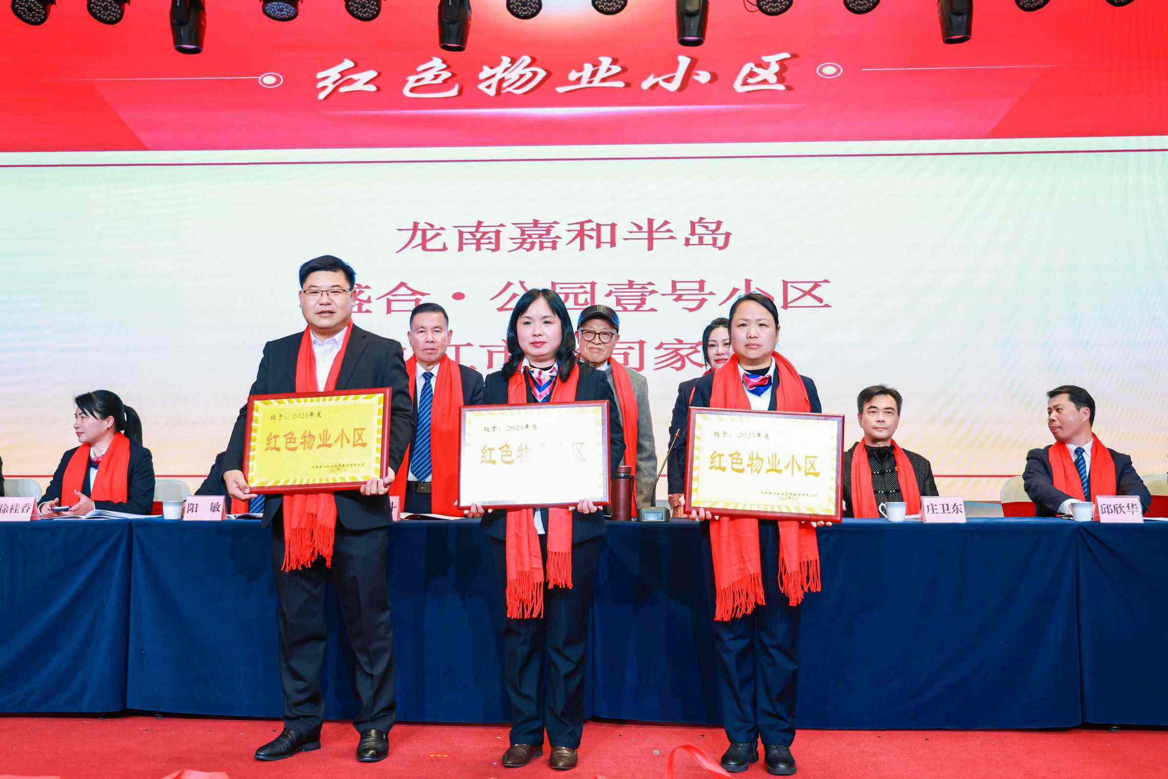 表彰環(huán)節(jié)高潮迭起,集團(tuán)常務(wù)副總經(jīng)理徐桂香宣讀《關(guān)于表彰2025年度先進(jìn)集體和優(yōu)秀個(gè)人的決定》?,F(xiàn)場(chǎng)先后頒發(fā)業(yè)務(wù)標(biāo)桿獎(jiǎng)、優(yōu)秀分公司獎(jiǎng)、優(yōu)秀示范項(xiàng)目獎(jiǎng)、紅色物業(yè)小區(qū)獎(jiǎng)、智慧物業(yè)先鋒項(xiàng)目獎(jiǎng)等集體獎(jiǎng)項(xiàng),以及勞動(dòng)模范獎(jiǎng)、市場(chǎng)業(yè)績(jī)突出獎(jiǎng)、優(yōu)秀管理干部獎(jiǎng)、優(yōu)秀員工獎(jiǎng)等個(gè)人獎(jiǎng)項(xiàng)。南昌分公司、九江市分公司等先進(jìn)集體,肖忠良、徐理文等勞動(dòng)模范,閔紅明等市場(chǎng)業(yè)績(jī)突出個(gè)人,以及盧文靜等優(yōu)秀管理干部、邱迎露等優(yōu)秀員工依次登臺(tái)領(lǐng)獎(jiǎng),領(lǐng)導(dǎo)嘉賓為獲獎(jiǎng)?wù)哳C發(fā)榮譽(yù)證書、獎(jiǎng)杯與獎(jiǎng)品,現(xiàn)場(chǎng)掌聲雷動(dòng),致敬每一位實(shí)干擔(dān)當(dāng)?shù)难嗯d奮斗者。